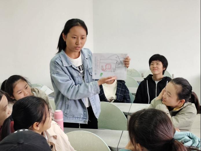 经过简单的暖身活动,各小组进入第一个环节:“记忆中的你”。小组成员先进行自我介绍,需记住彼此的名字和兴趣爱好,若答错则进行“真心话大冒险”。“真心话”增进了同学们间的了解,“大冒险”在轻松欢快的氛围中结束。随后进行“我是画家”环节,各小组成员在有限时间内依次绘画,共同完成一幅名为“我的大学”的作品。画面缤纷丰富,也有不少同学画下曾经共同的记忆。