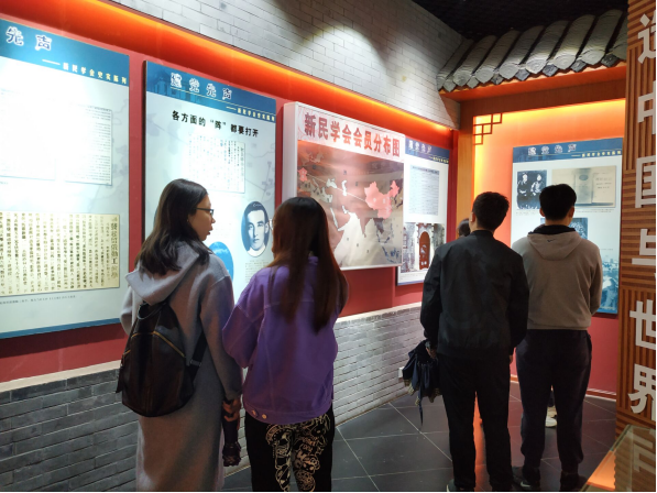 小组成员们满怀着敬畏之情,踏入历经百年的土地,通过参观旧址陈列馆,了解到二十世纪初,在中华民族的危机关头,在新文化思想激烈碰撞的年代,一群意气风发的有志青年,怀抱拯救国家民族的豪情壮志,围绕“个人及全人类生活向上”的目的,形成了“集合同志,创造新环境”的一致意愿。1918年4月14日,毛泽东、蔡和森等13人发起成立新民学会,以“革新学术,砥砺品行,改良人心风俗”为学会宗旨。