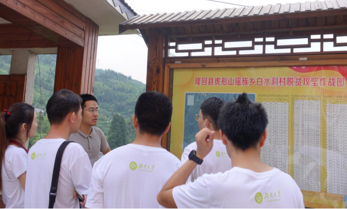 “博士创新实践团”一行11人深入湖南省邵阳市隆回县白水洞村,开展暑期社会实践活动。博士团成员均来自于学院研究生导师团队党支部,创新“党建+实践”模式实地调研了当地富硒产业、瑶乡文化产业、旅游产业,走访当地居民,积极思考破解发展困境、建言当地特色产业发展的路径,为脱贫攻坚和乡村振兴注入青春力量。