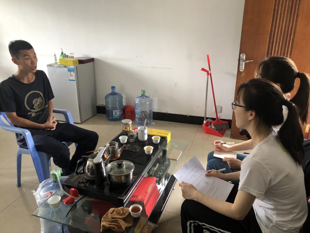 随后,团队成员们有幸采访到赛岐镇副镇长刘国微、镇党委组织委员陈敏,分别就农业产业发展、基层党组织建设工作进行专题学习。身形纤瘦而又目光坚定的刘国微副镇长是赛岐镇人才引进的清华大学研究生,来到镇上工作才一年多,在他的努力工作下,赛岐镇象环村的葡萄产业已经成为具有高知名度的品牌,为当地产业扶贫带来了巨大贡献。他自信的说到,赛岐镇的农业发展正值上升期,其中葡萄产业最具特色,实现了“从无到有、从点到面、从劣到优、从一到三”的发展格局,有效提升了村民们的收入,未来将会重点从农业技术现代化、发展理念现代化、产业融合系统化等出发,深化当地产品品牌,提炼农名田间智慧与精神,积极响应习近平总书记的乡村振兴战略。
