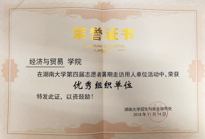 2018年获评校暑期走访用人单位优秀组织单位