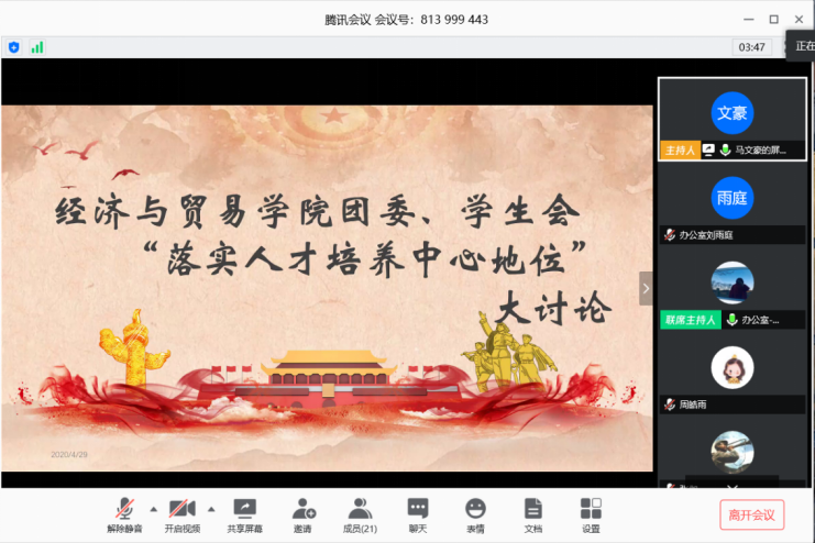 经小猫蒋爕提到:学校、学院在思想宣传方面,始终坚持思政引领,立足新媒体平台,及时推送时政财经新闻,促进学生思想从“小我到打我”的转变。下一阶段将积极倡导学生多关注专业热点问题,积极组织学生交流讨论,从多方面提升学生的学习能力。