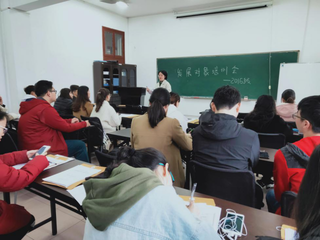 2019年全体党员发展对象在行政楼713室进行第一次思想学习活动,活动由学院2016级辅导员蔡婕萍主持。