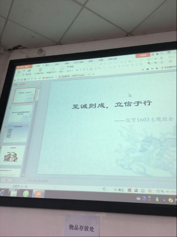 在整个班会期间,首先由同学们自己谈一谈遇到的诚信问题以及大学生活中比较常见的不诚信的行为,包括代考、代课、上课迟到等一系列问题。之后由主持人为大家讲解包括贷款还款、代课代考、毕业论文、学术研究、资格证明、求职过程等方面存在的诚信问题,并倡导大家诚信考试。在班会临近结束的时候,我们的辅导员蔡婕萍老师对此次活动进行了点评,通过实例呼吁我们诚信做人。