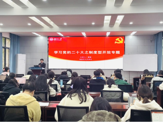 党委召开“学习党的二十大精神之稳步扩大制度型开放”专题党课,学院党委委员、学院副院长谢锐主讲,第73期入党积极分子同学参加本次党课。