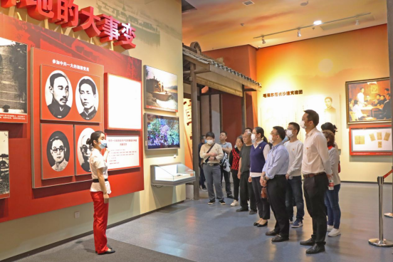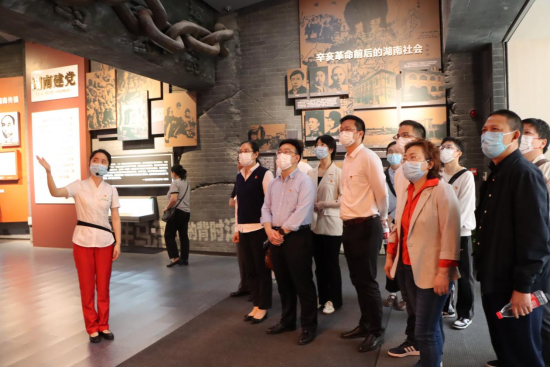 随后参会人员前往湖南省党史陈列馆进行实地研学,跟随讲解员聆听了党史陈列馆中藏品的背景故事,深入了解了中国共产党在湖南省的发展脉络,看到了在党的领导下湖南人民的奋斗历程和取得的辉煌成就,并在“潇湘魂”主题雕塑前重温了入党誓词,牢记党员的初心使命,感受新时代党员的责任和担当。